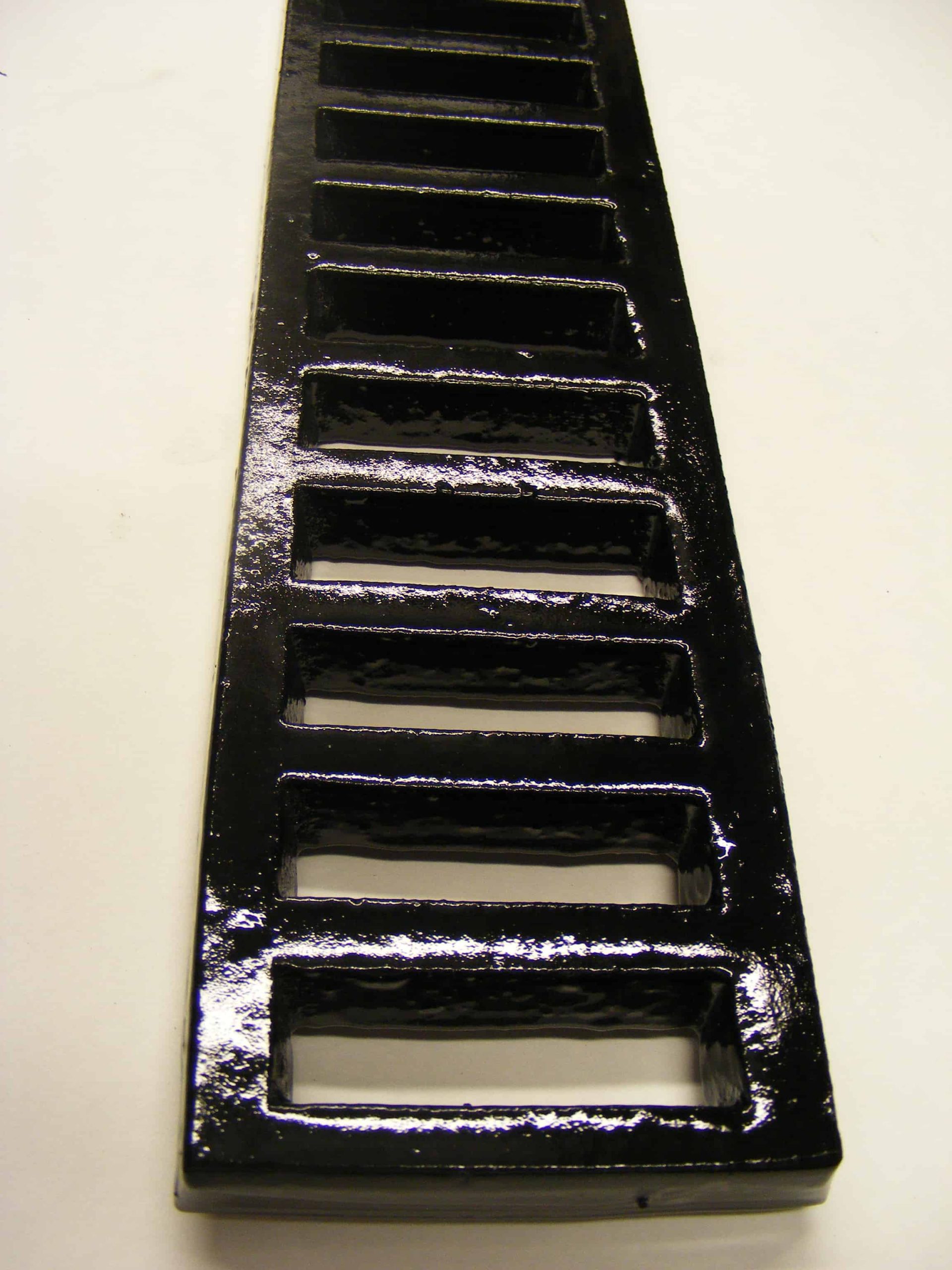 Slotted gratings are available in a painted black finish, with drilling and mesh for an additional cost, £50 for mesh and £20 for drilling.